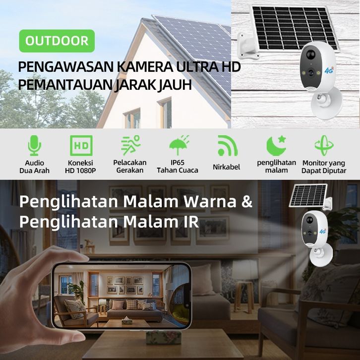 Promo Kamera CCTV 4G Tenaga Surya Outdoor IP66 | Night Vision | Tanpa WiFi & Listrik Keren