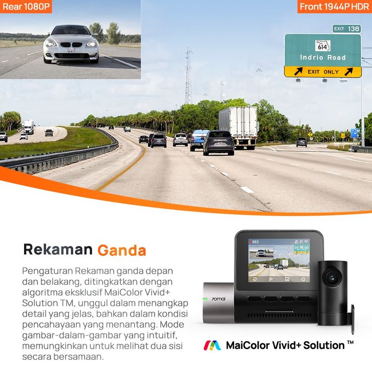 Murah 70mai Dash Cam A510 Set Sony Starvis 2 4G Live Control GPS HDR Front 1944P Rear 1080P Dashcam Mobil Keren
