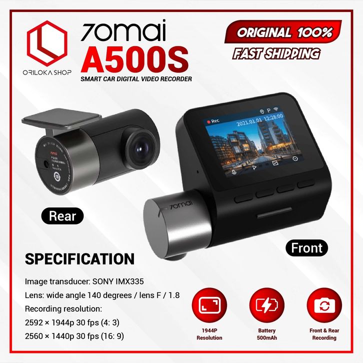 Terlaris 70mai A500S Smart Dashcam Pro Plus Rear Camera 1944P GPS ADAS - Kamera Mobil Keren