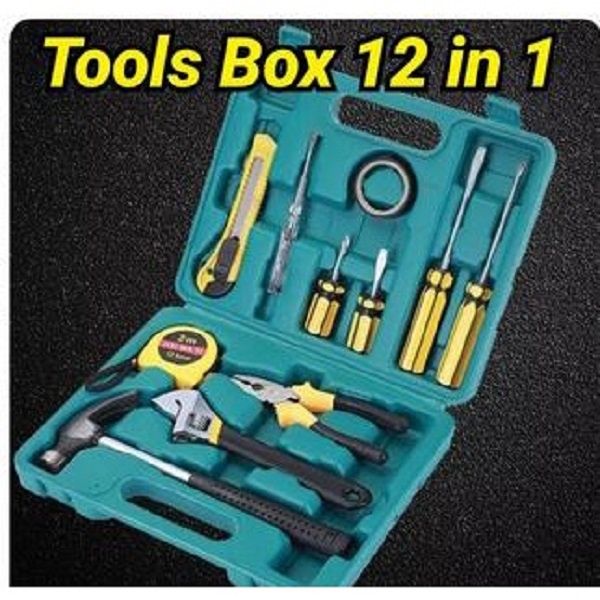 Alat Perkakas 12 in 1 Tool Kit Tool Set Tool Box Obeng Tang Palu Kunci