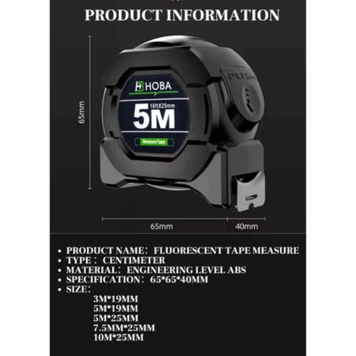 ALGAN25 METERAN NEON 5METER FLUORESENSI TEBAL 19MM PENGUKUR BANGUNAN METAL PRESISI TINGGI TUKANG