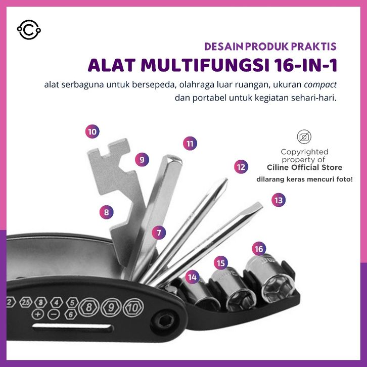 Bike Toolkit Kunci Sepeda Set 16 in 1 Obeng Kunci L Tool Kit United Tools / Toolkit Kunci Sepeda Set