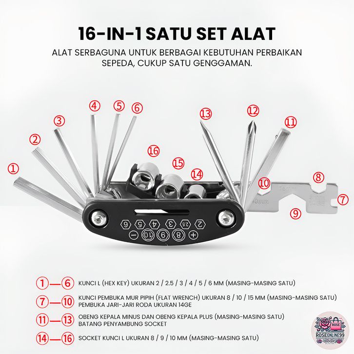 RO Kunci Sepeda Set 16 IN 1 Mini Tool Kit Lipat Kunci L Obeng Socket