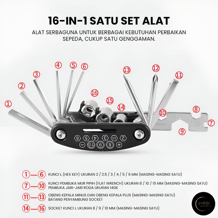 EM Kunci sepeda set 16 in 1 mini tool kit lipat kunci L obeng socket