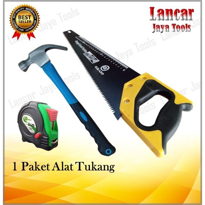 1 Set Meteran Tukang Bangunan Karet 5 Meter / Palu Kambing Oz Gagang Fiber Martil Cabut Paku Claw