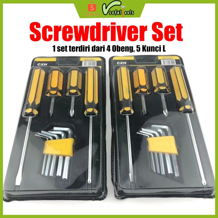 Usefultools Set Paket Obeng Kunci L Tools 9Pcs Hexagonal Pliers Screwdriver