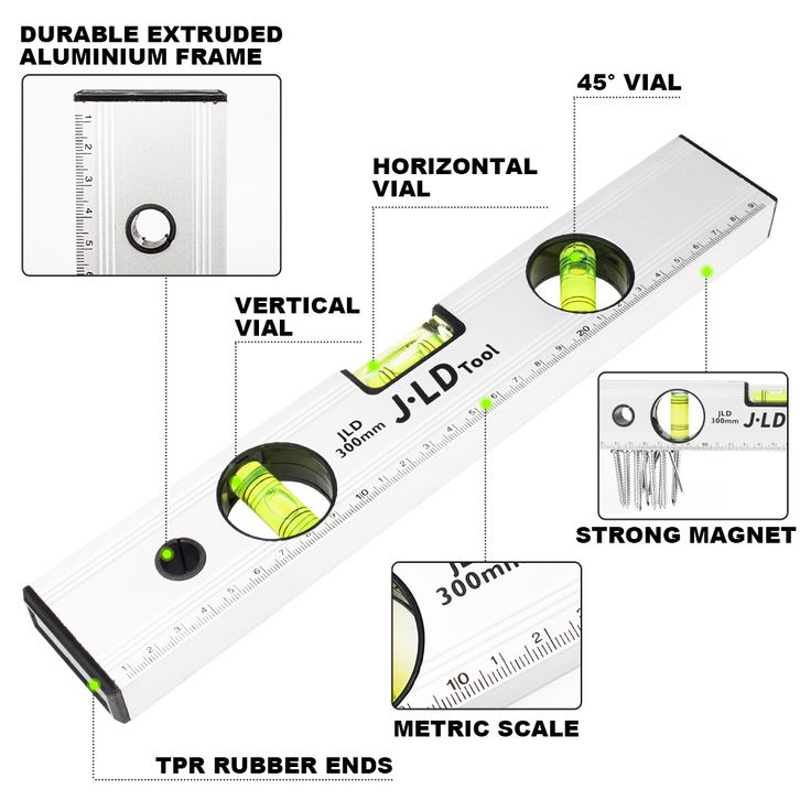 JLD Spirit Level Wateass Magnet Aluminium Akurat Perkakas Alat Pengukur 3mm/4mm/mm/6mm