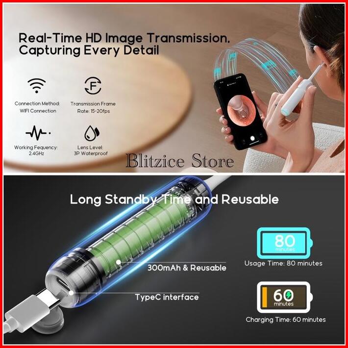 Bebird Home 30s Ear Cleaner Smart Visual Ear Wax Removal Stick Endoscope Tweezer Earpick Camera Otoscope Wireless Alat P