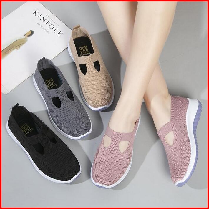 Coline Ty3-6 Flatshoes Flyknit Wanita Kerja C1190 Canvas Karet Shoes Flat