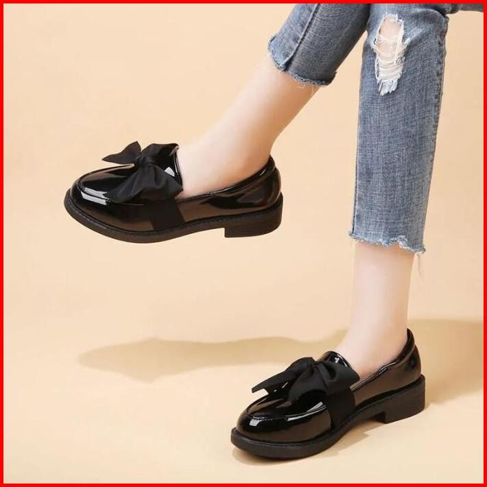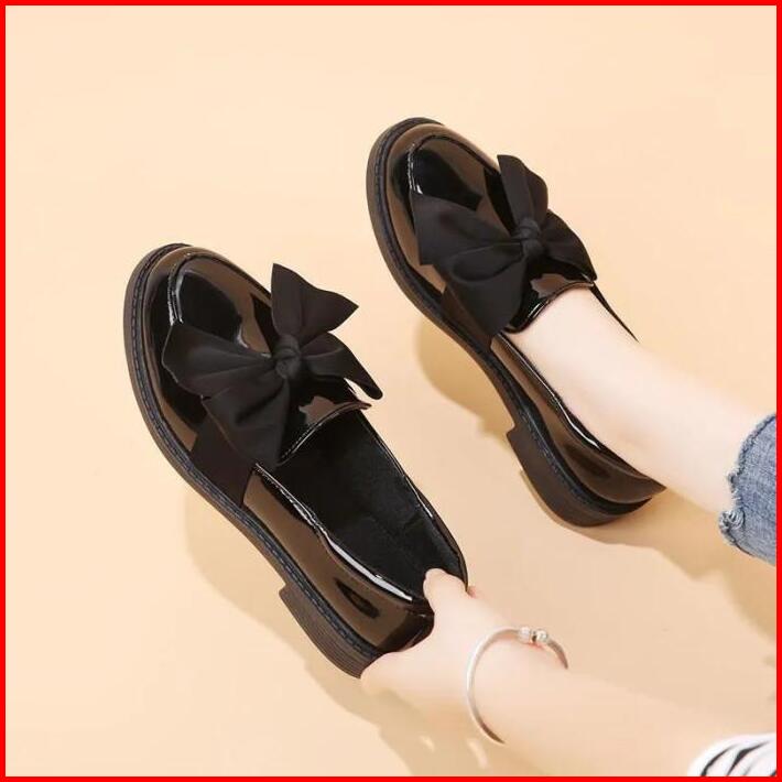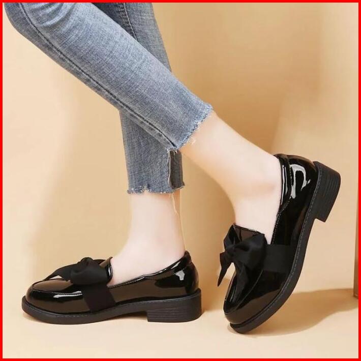 Sepatu Wanita Fashion Korea Style Hitam Black Premium Glossy Dockmart Pita Besar Pantofel Loafer Sepatu Kerja Kantor Pes
