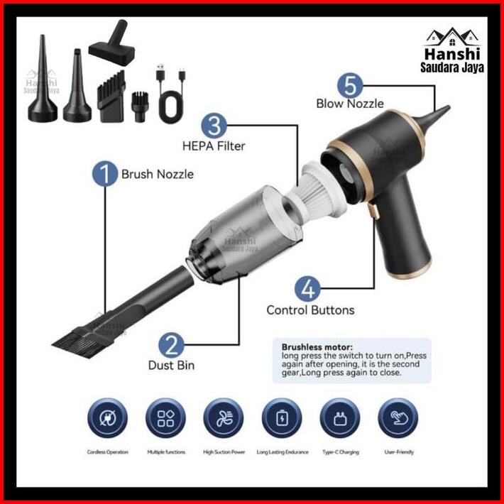 Vacuum Cleaner Portable High Pressure 15000 Pa 4000 Mah Alat Penyedot Debu Serbaguna Mobil Vakum Pembersih Kasur