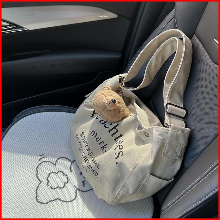 Ccaloumatt Tas Bahan Wanita Sling Bag Skena Sling Bag Canvas Korean Style Sling Bag Wanita Tas Bahu Besar Wanita Tas Kan