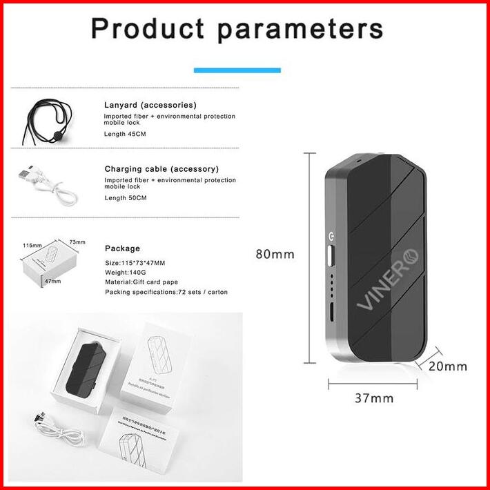 Vinero Ivy Portable Purifier Necklace Ion Negatif Uv Disinfect