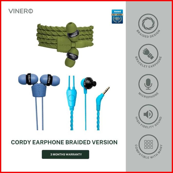 Vinero Cordy Wraps In Ear Earphone Braided Hifi Sound Quality Magnetic Microphone