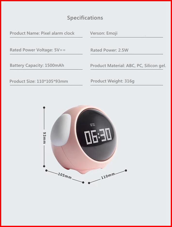 Vinero Digie Alarm Clock Pixel Lamp Multifunction Interactive Emoji