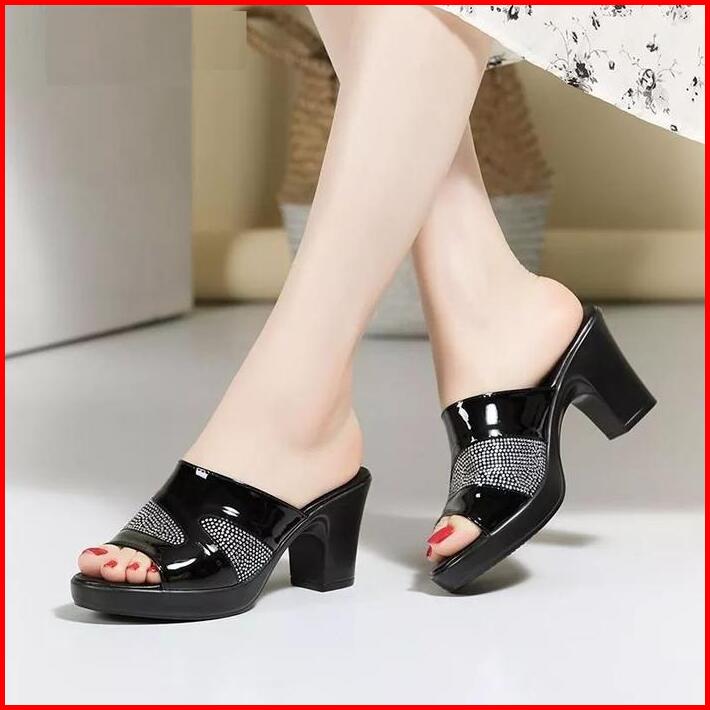 Sepatu Sendal Wanita Hitam Premium High Heels Hils Hak 8cm Pesta Sjb01