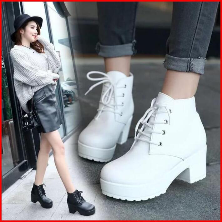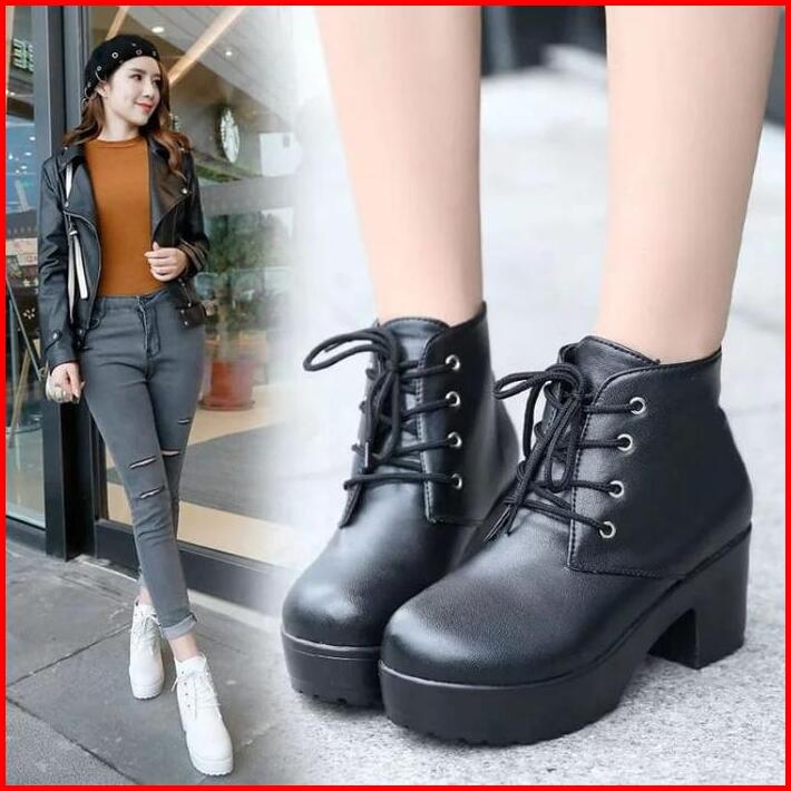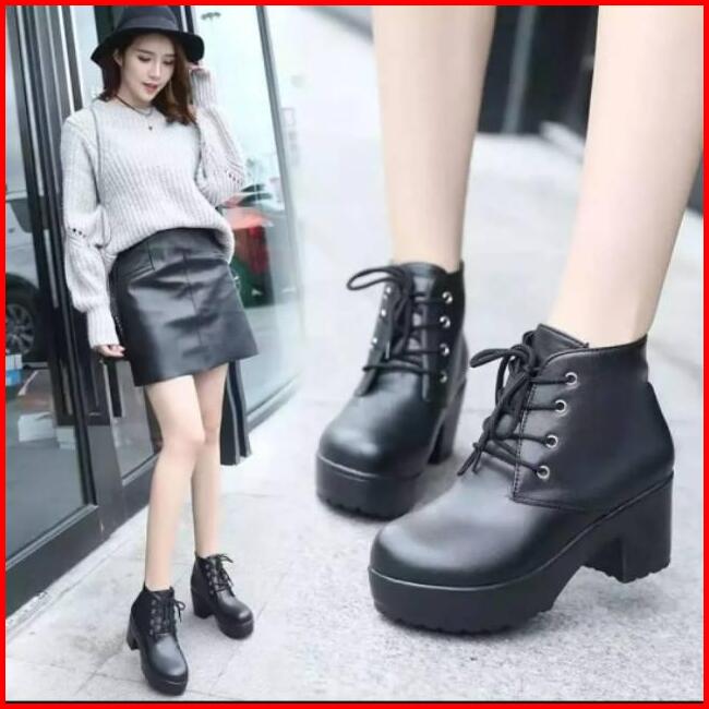Sepatu Boots Heels Hitam Wanita Hak 5cm La02 Fashion Korea Sepatu Pesta Kerja Kantor Kasual Kondangan Hak Tinggi High He