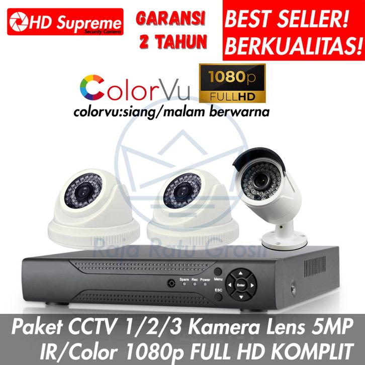 Murah PAKET CCTV 1/2/3 KAMERA FULL HD 1080P 5MP INFRARED / COLORVU KOMPLIT MURAH 4 CHANNEL INDOOR OUTDOOR AHD Keren