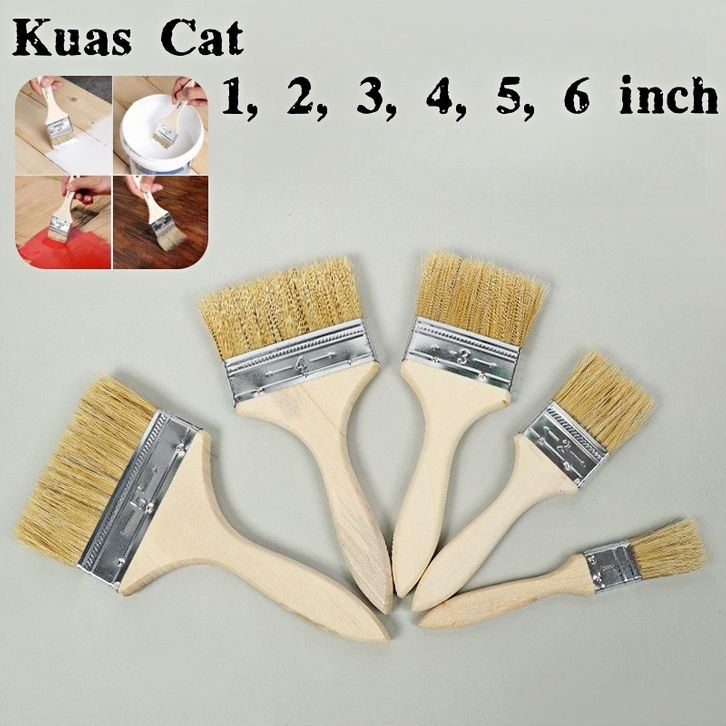 Kuas Cat 1" 2" 3" 4" 5" Gagang Kayu Premium - Kuas Tembok & Besi Dinding Anti Rontok, Cocok untuk