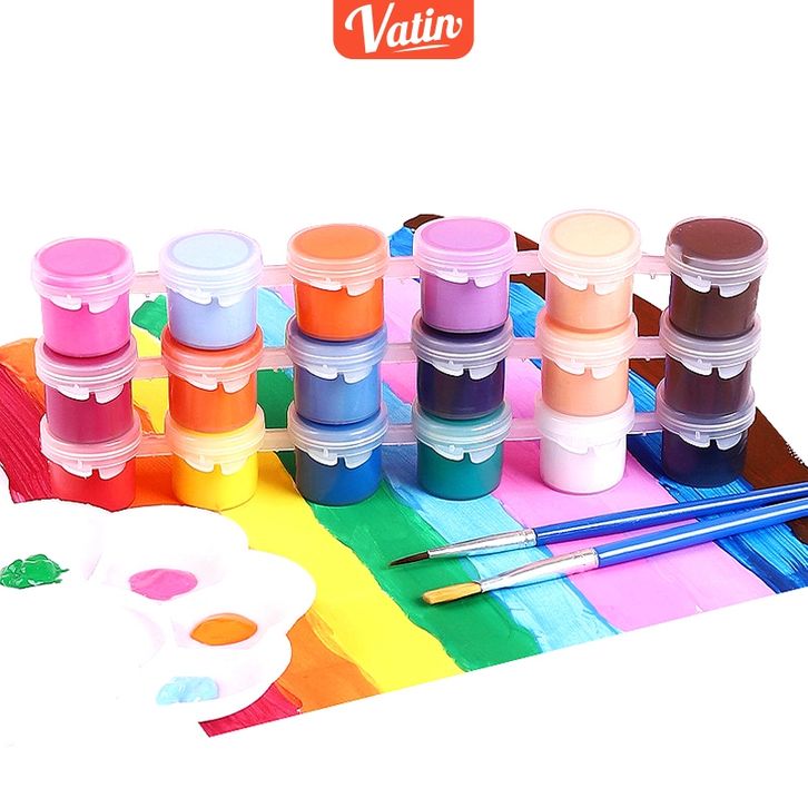 Cat akrilik Set 6/12 Warna lukis kanvas/cat air anak/cat air lukis set lengkap + kuas/cat warna