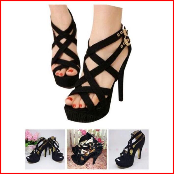 Sepatu Sandal Wanita Premium Hitam Black High Heels T06 Hak Tinggi 9 Cm Pesta Formal Kondangan Party Shoes Branded Kekin