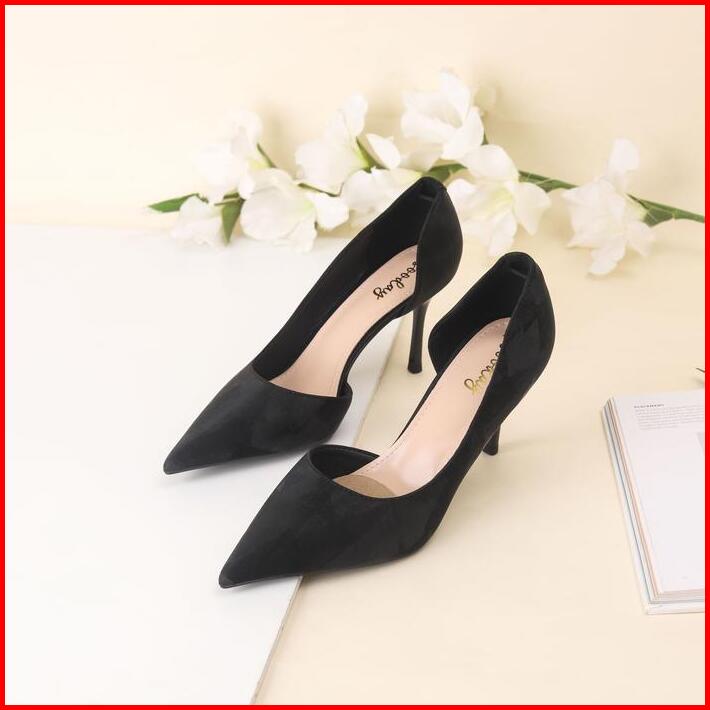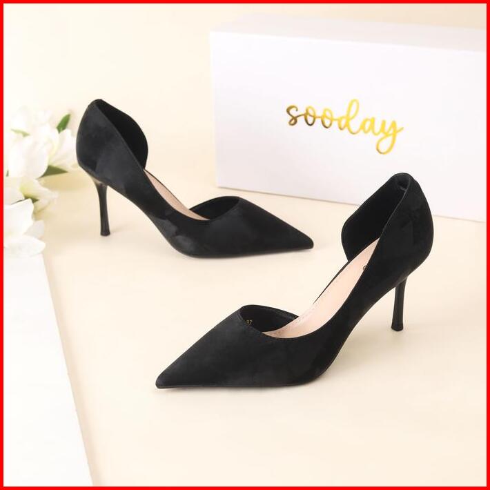 Sooday No. 1008 Black Size 34-43 10cm Sepatu Hak Tinggi Aesthetic Sepatu Wanita Kerja Sepatu Kuliah Sepatu Hees Hitam