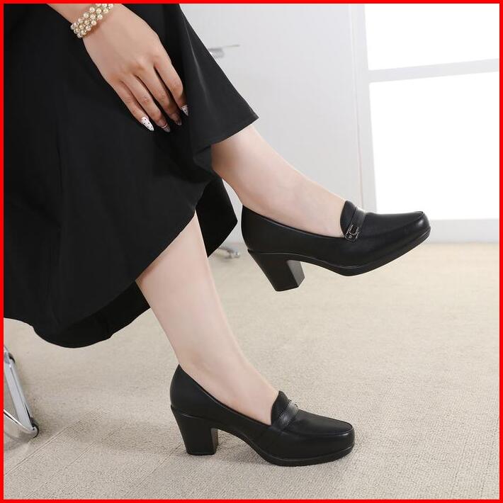 Bozka Sepatu Wanita Pansus Mth Full Busa 6cm Heels Shoes Black