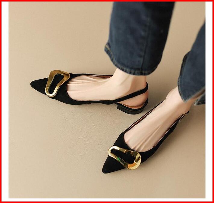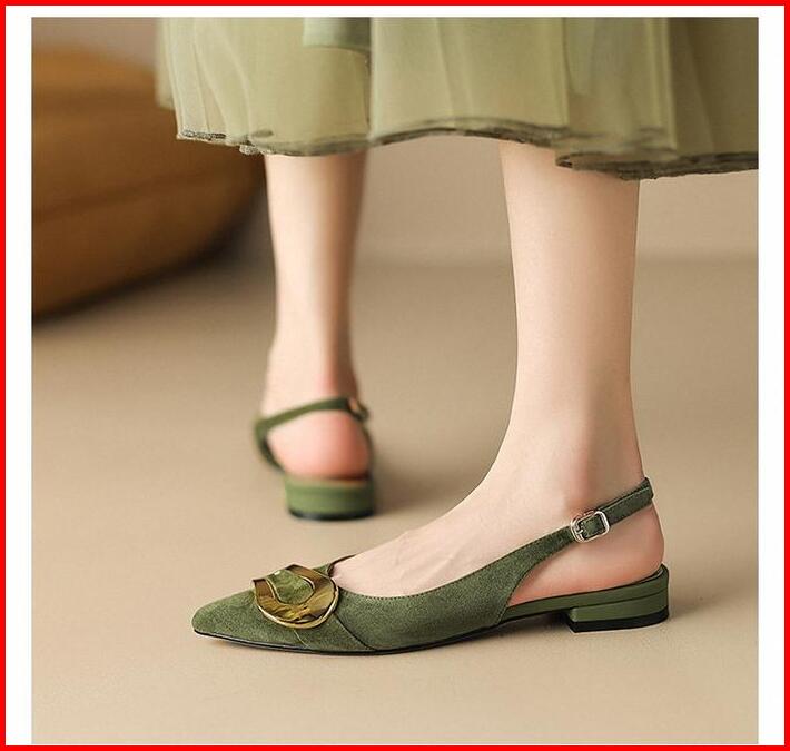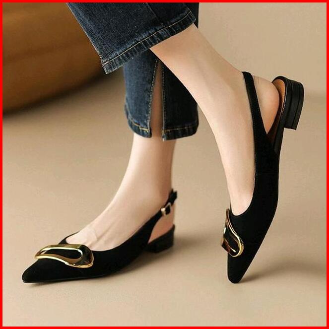 861 Mayz Slavina Sepatu Suede Slingback Wanita Sepatu Kerja 3 Warna Black Brown Green Flat Flat