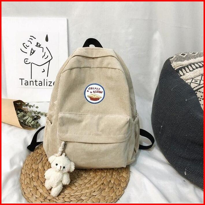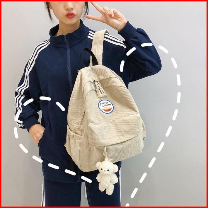 Mismi Flavia Bag Tas Ransel Wanita Korean Style Korduroi Cute School Backpack Perempuan Stylish