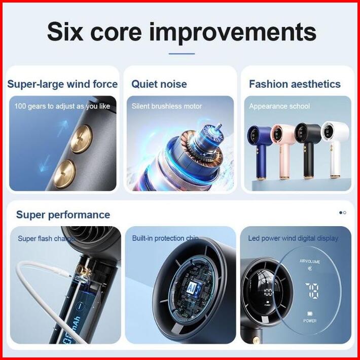 Codhigh-speed Kipas 100 Gear Wind Kipas Angin Digital Display Adjustable Turbo Kipas Tangan Elektrik