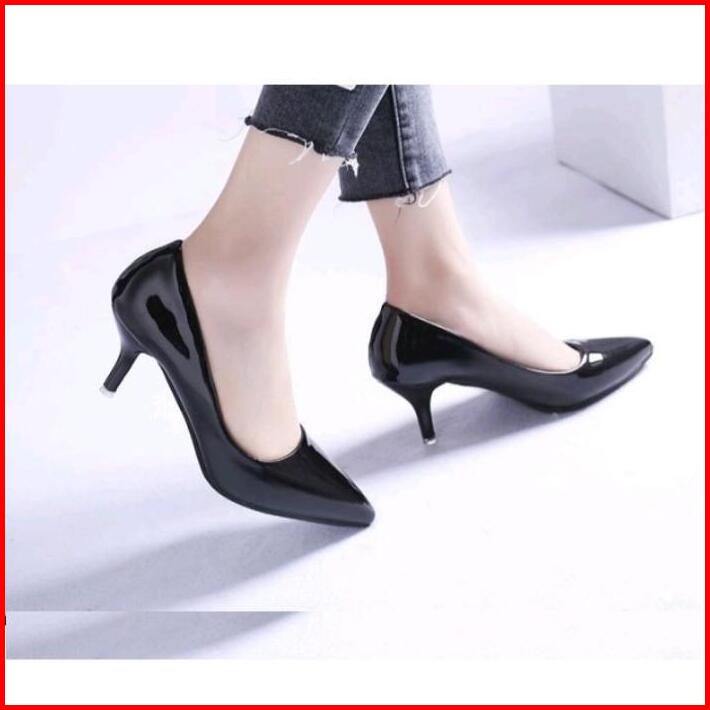 Sepatu Wanita Hs27 Hitam Black Glossy Premium High Heels Hak 5cm Sepatu Pesta Kerja Kantor Kondangan Acara Formal Resmi