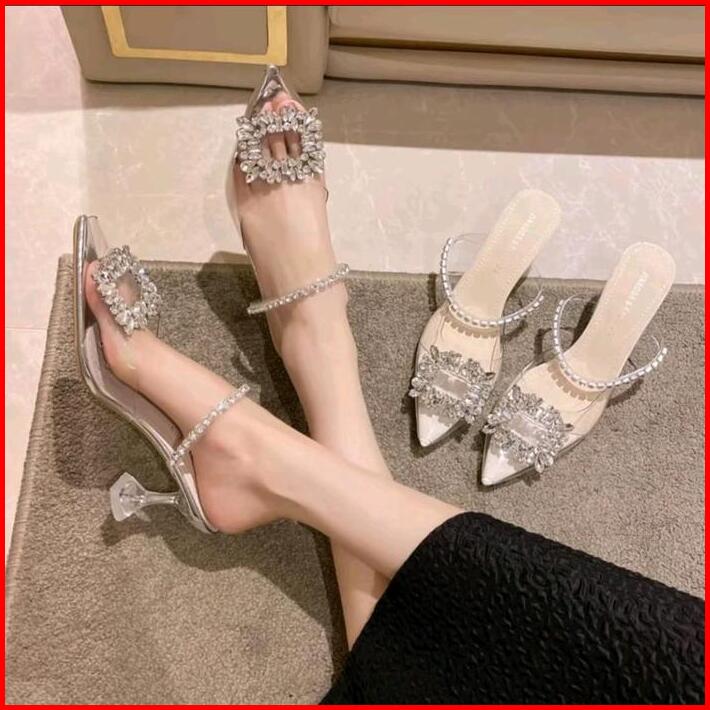 Sandal Wanita Hak Kaca Mika Impor Terbaru Shoes Heels Transparan Pesta Wedding High