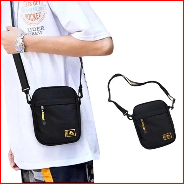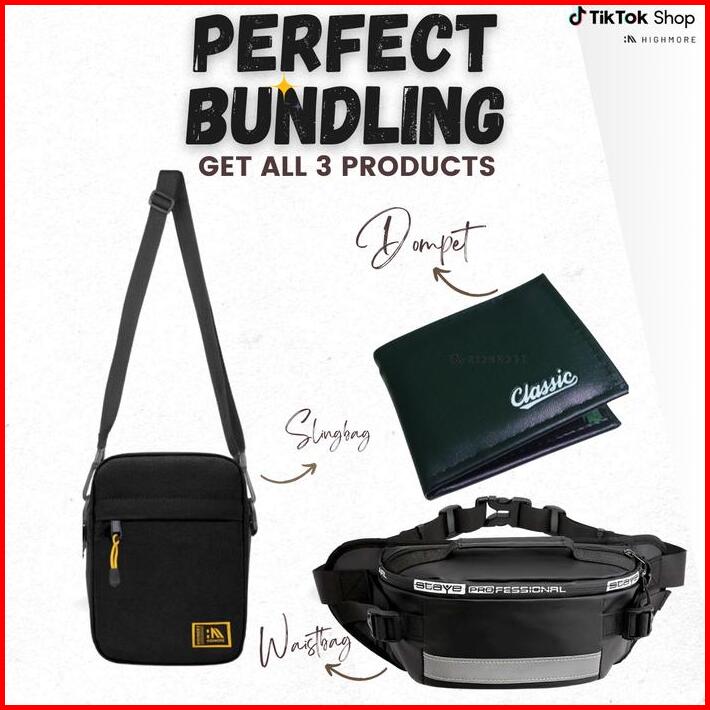 Highmore Perfect Bundling Tas Selempang Pria Tali Bisa Diatur Bonus Dompet Slingbag Kanvas Waistbag Hitam