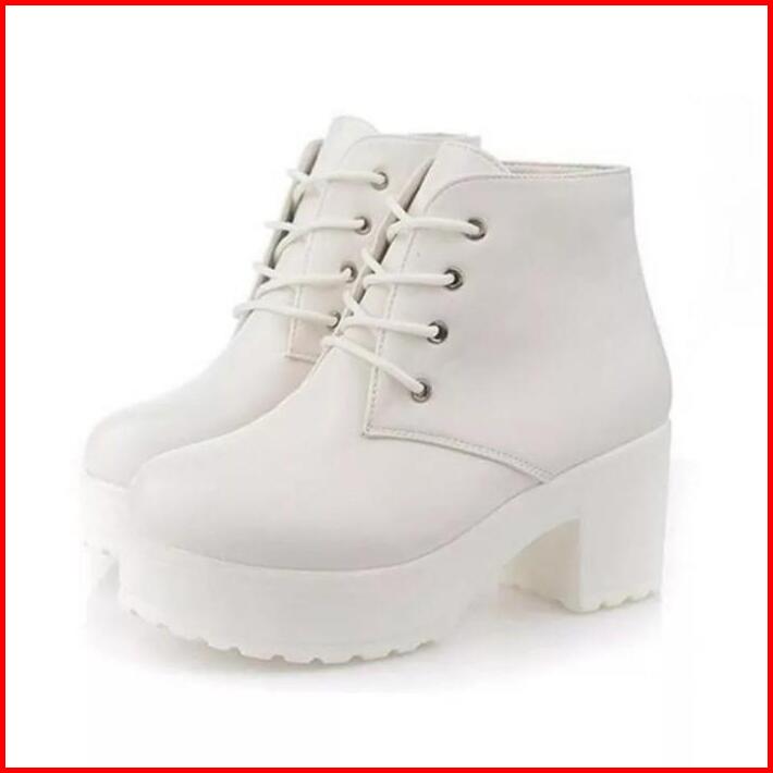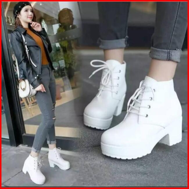 Sepatu Boots Heels Putih Wanita Hak 5cm Fashion Korea La02 Sepatu Pesta Kerja Kantor Kasual Kondangan Hak Tinggi High He