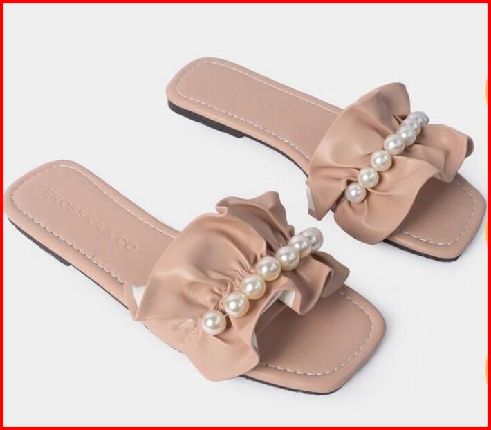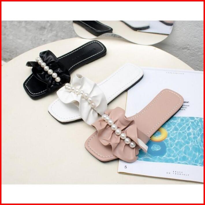 Sendal Sandal Flat Wanita Cewek Asf08 Brown Mocca Mutiara Korean Style Teplek Fashion Korea Elegan Modis Kece Trendy