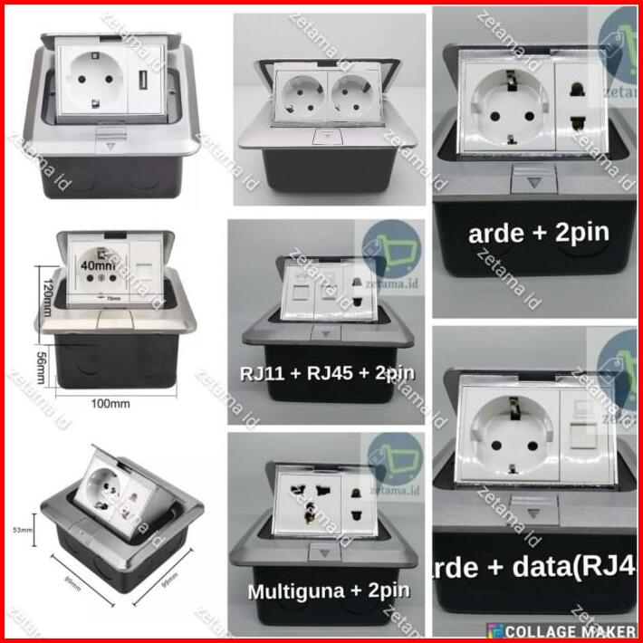 Stop Kontak Lantai Tanam Aluminium Floor Socket Pop Up