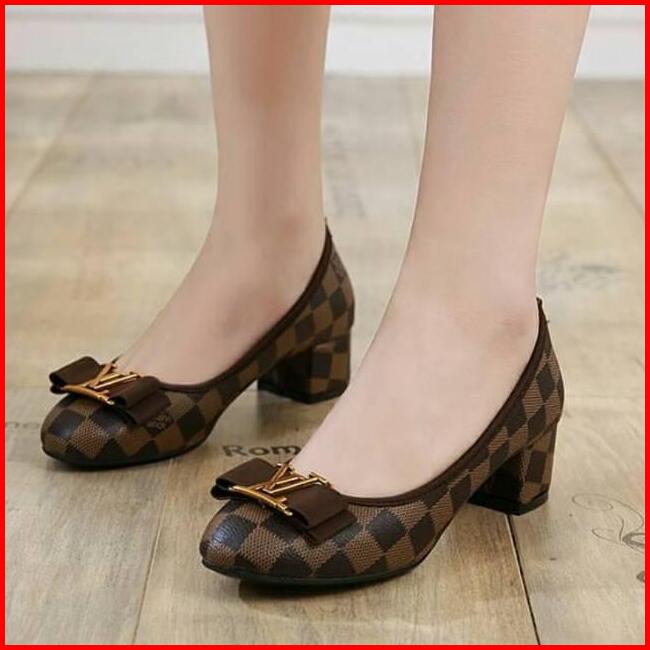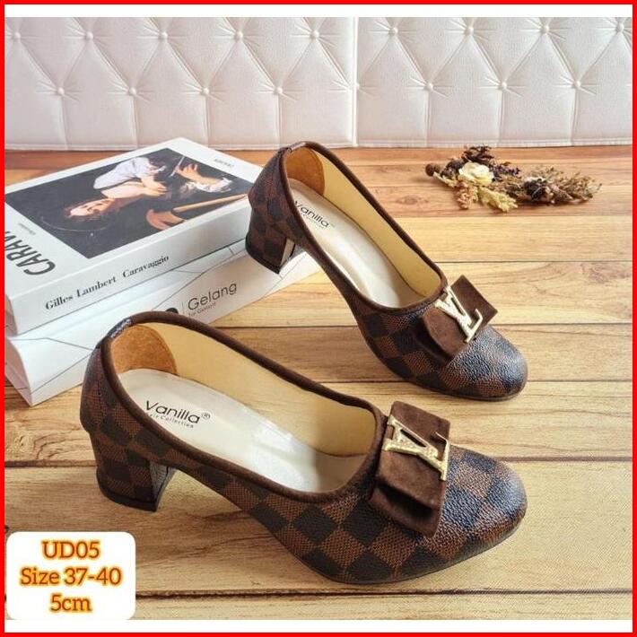 Mivelshoes Sepatu Wanita Ud05 Hak 5cm Pesta Kerja Kantor Kondangan Formal Kasual Coklat Sepatu Pantofel Pita High Heels
