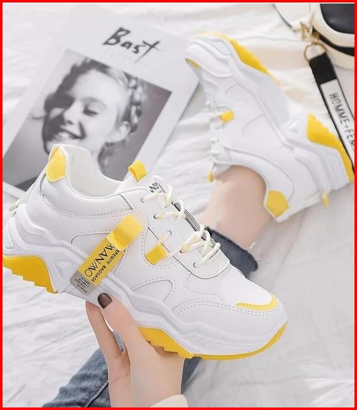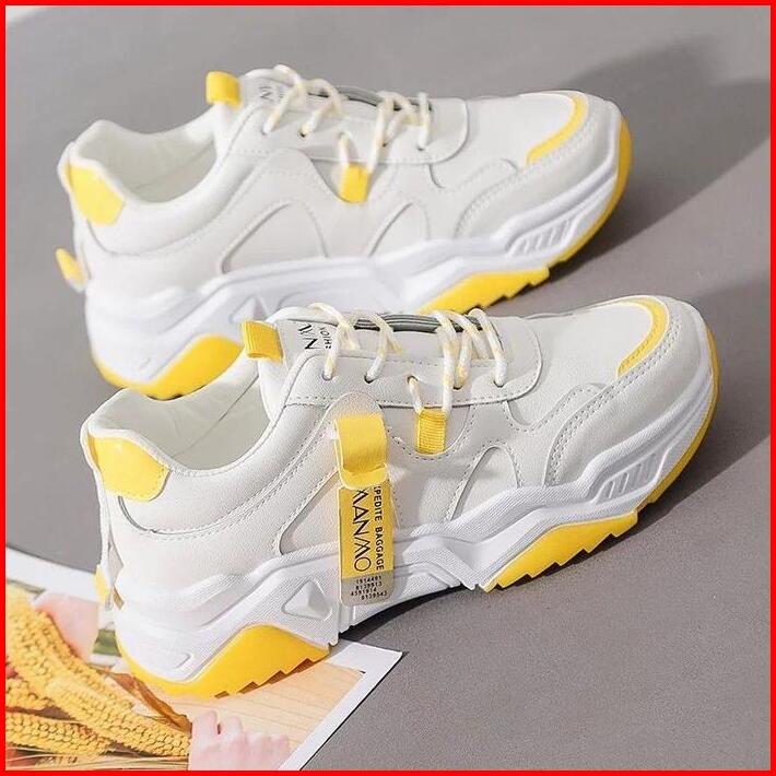 Sepatu Sneakers Wanita Wanwoo Putih Kuning Yellow Shoes Fashion Sport Korea Style Kekinian Sepatu Lari Tali Olahraga Kas