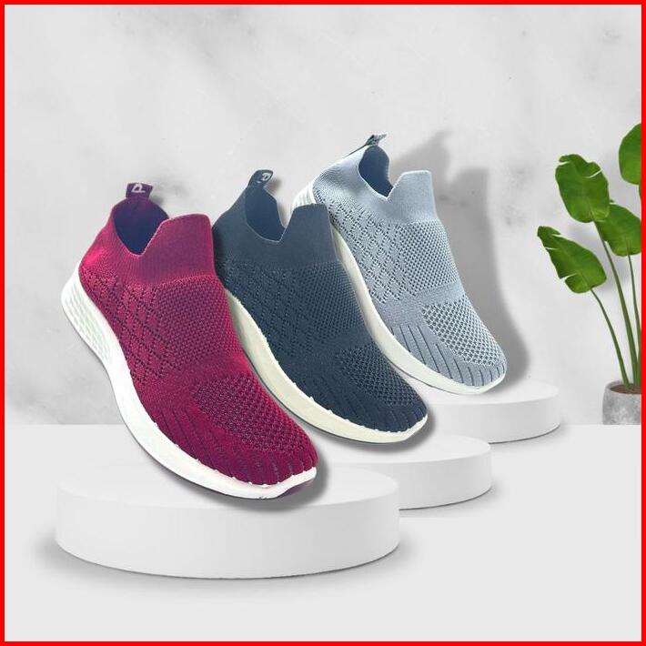 Cassie Sepatu Fashion Slip On Flyknit Sneaker Sepatu Antislip Soft Canvas Tp88 Casual Sneakers Shoes Wanita Running Kasu