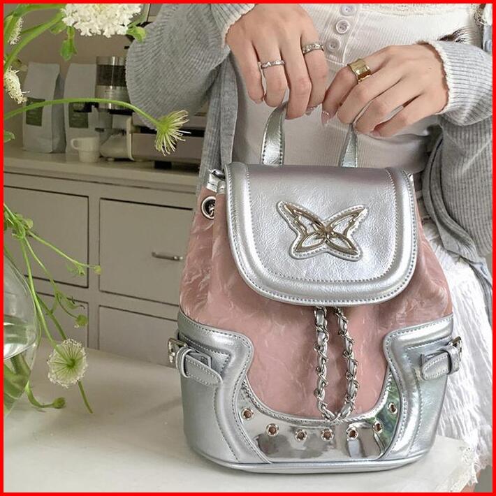 Codready Asli Rantai Manis Keren Gadis Ransel Wanita Baru High-end Merah Muda Ransel Tas Bahu Rantai Tas Ransel Mini