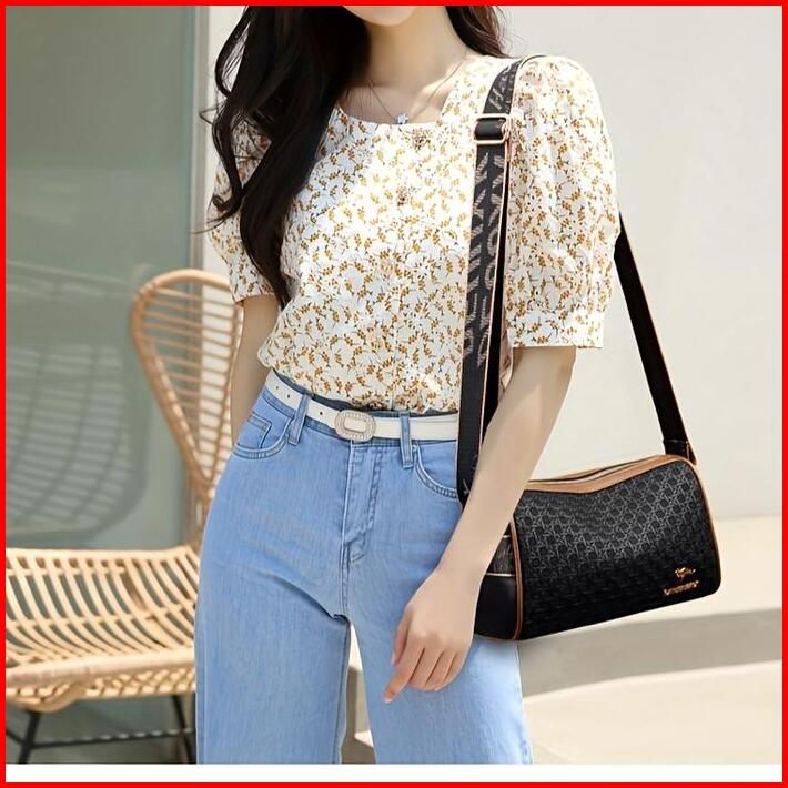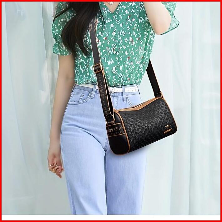 Tas Selempang Wanita Emboss Model Dengan Tali Webbing Dari Kulit Sintetis