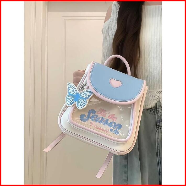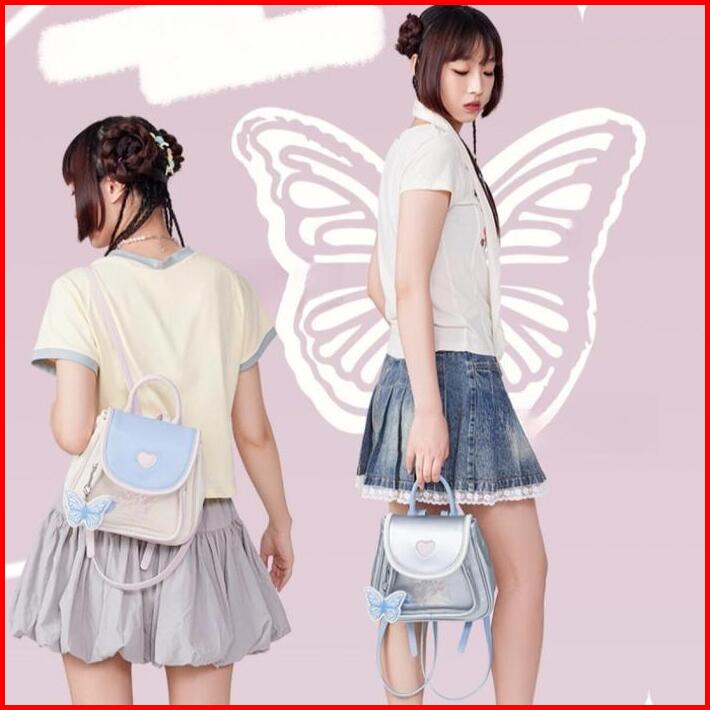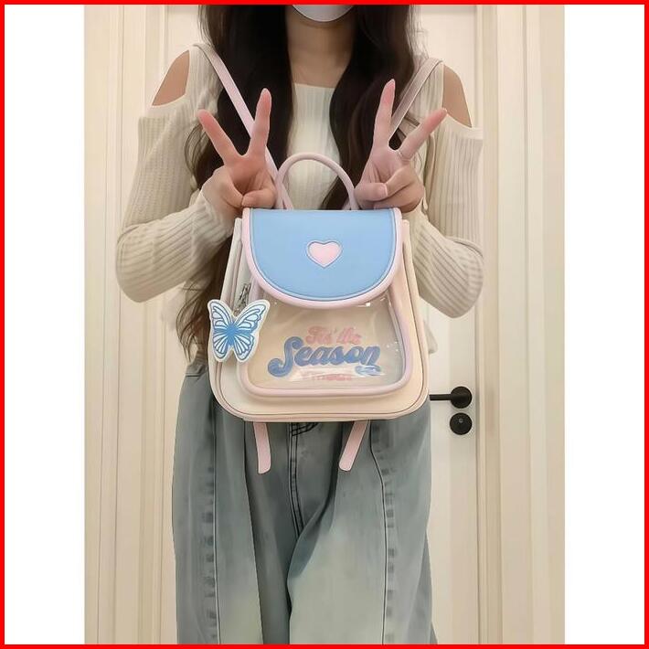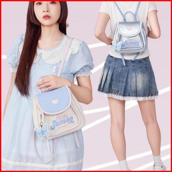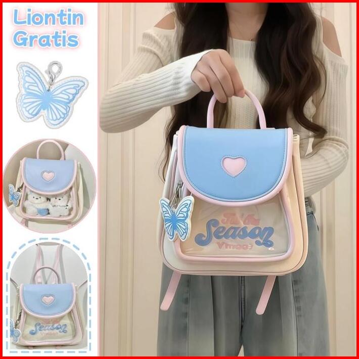 Gaya Baruliontin Gratis Tas Ransel Kulit Lucu Y2k Tas Sekolah Wanita Mini Backpack Ins Korea Fashion Import