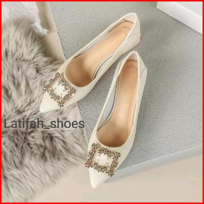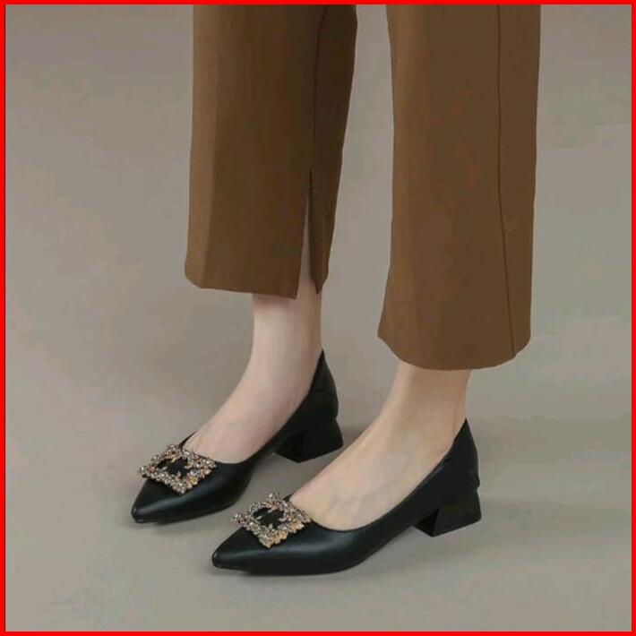 Sepatu Wanita Flat Shoes Tinggi 3 Cm Premium Quality Hitam Kerja Black