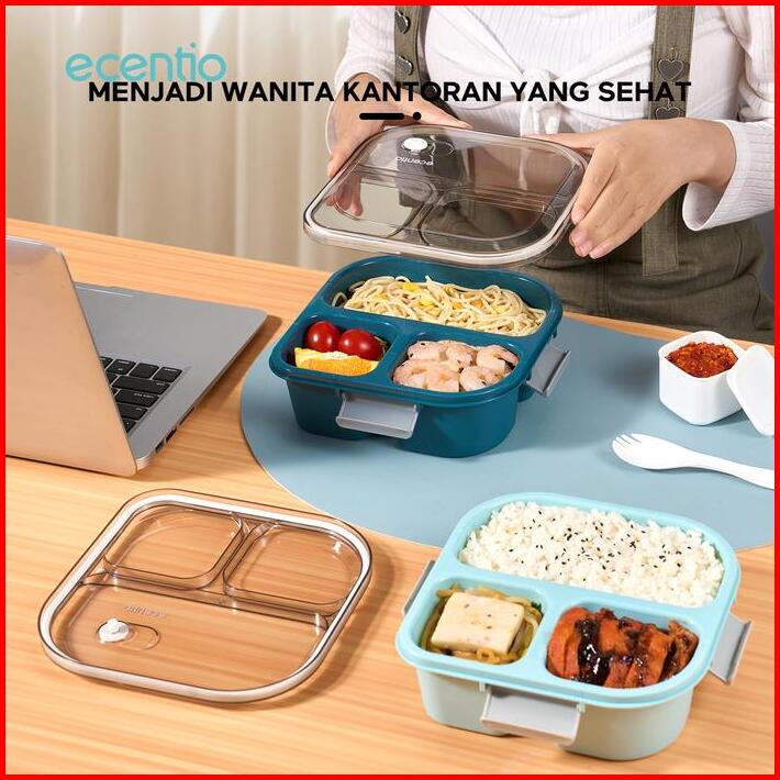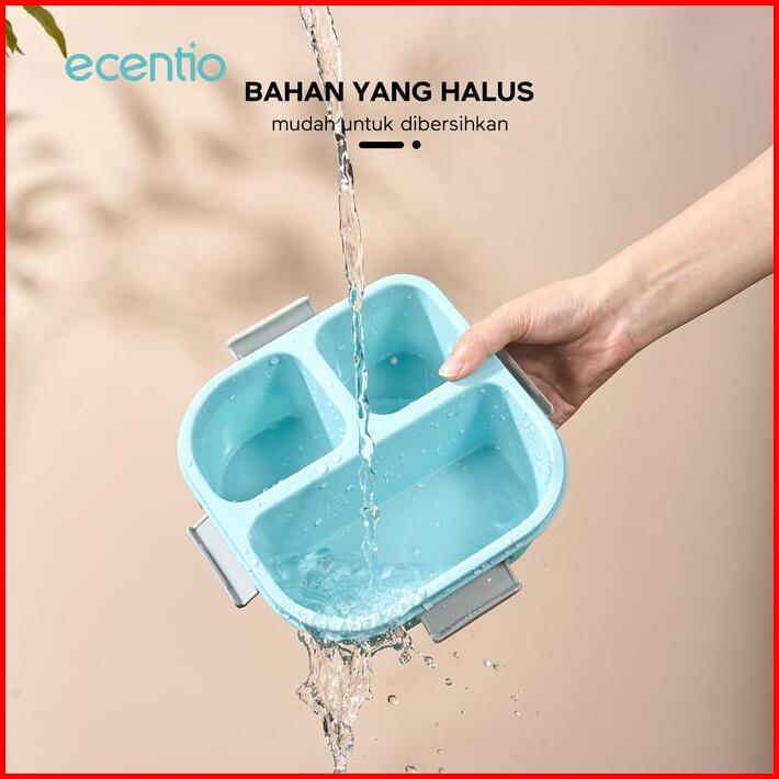 Ecentio 3 Grid Anti Tumpah Tempat Bekal 1100ml Kotak Makan Wadah Bekal Kotak Sup 100ml Bpa Free-bg