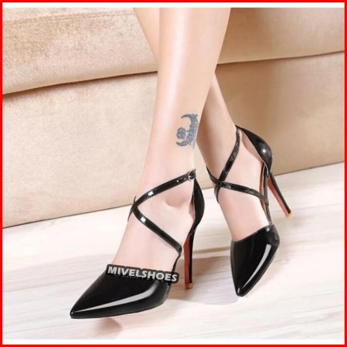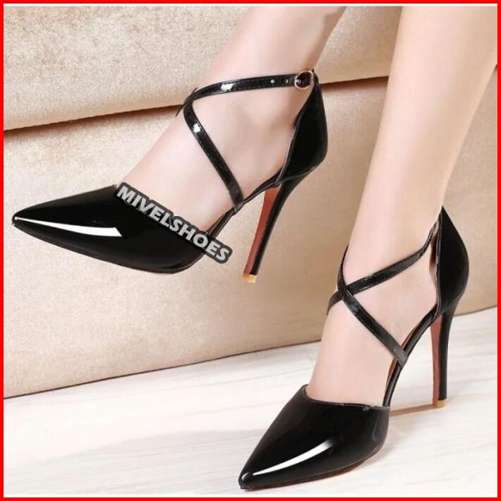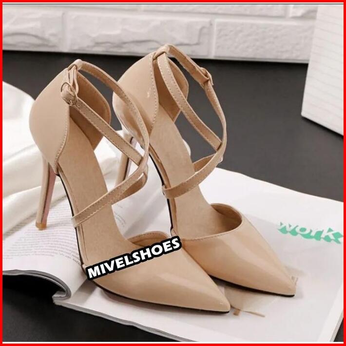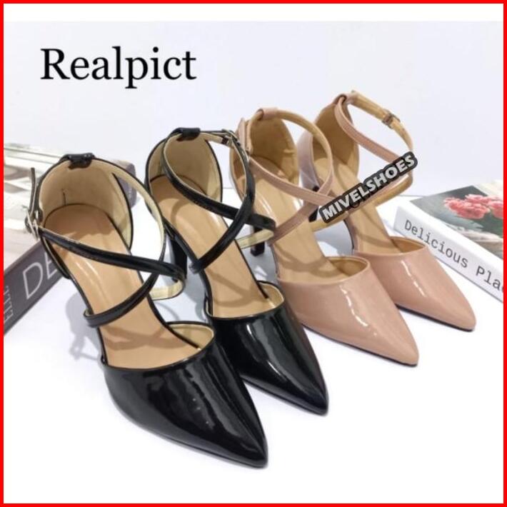Sepatu Wanita Cream Mocca Pesta Kondangan Formal Glossy Hak Tinggi 9cm High Heels Sh34 Mewah Elegan Trendy Modis Higheel