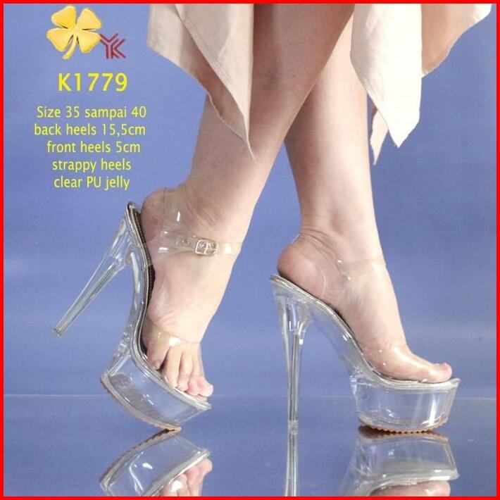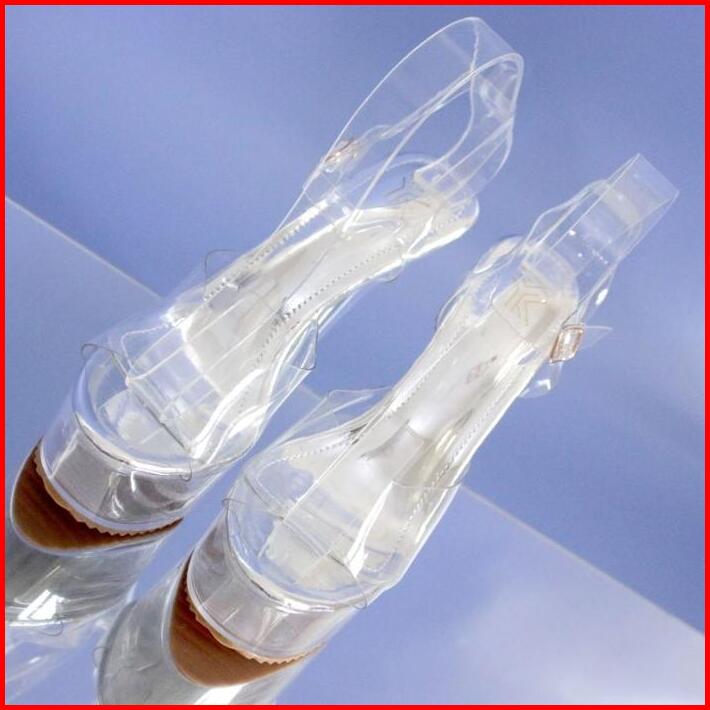 Ykshoes 1779 Heels 15cm Strappy Heels Sepatu Hak Tali Wanita Hak Tinggi Sepatu Hak Kaca Transparan Heels Import Glass He