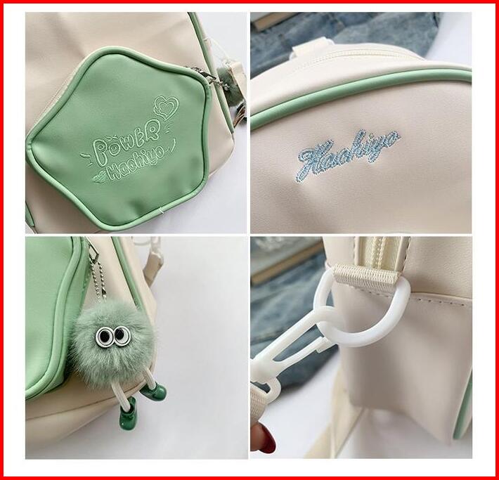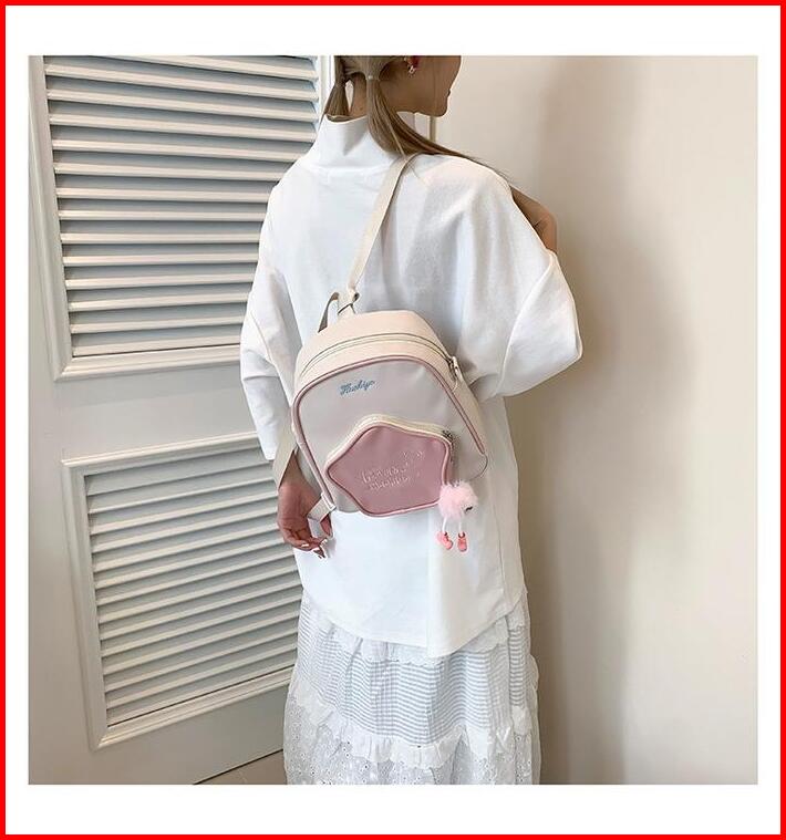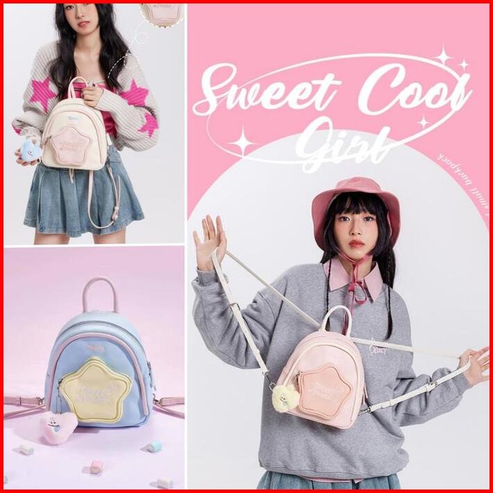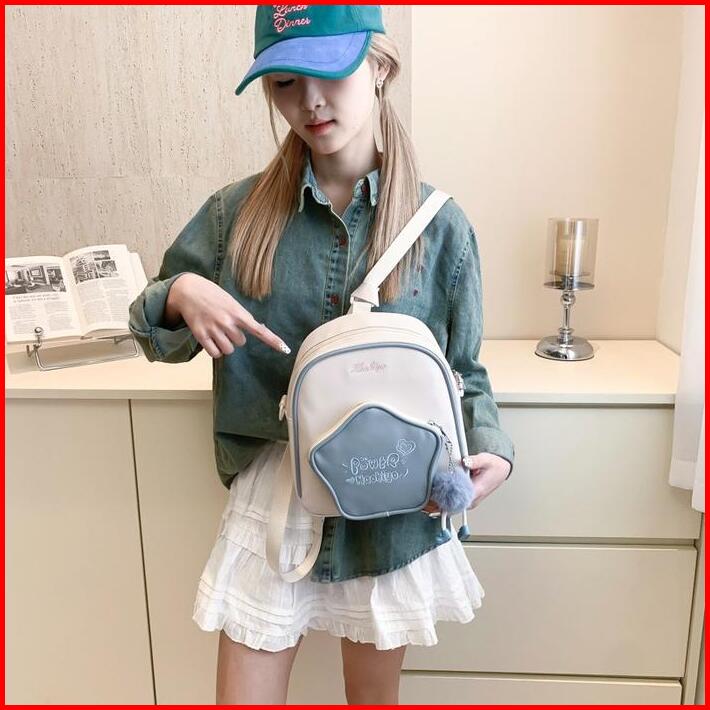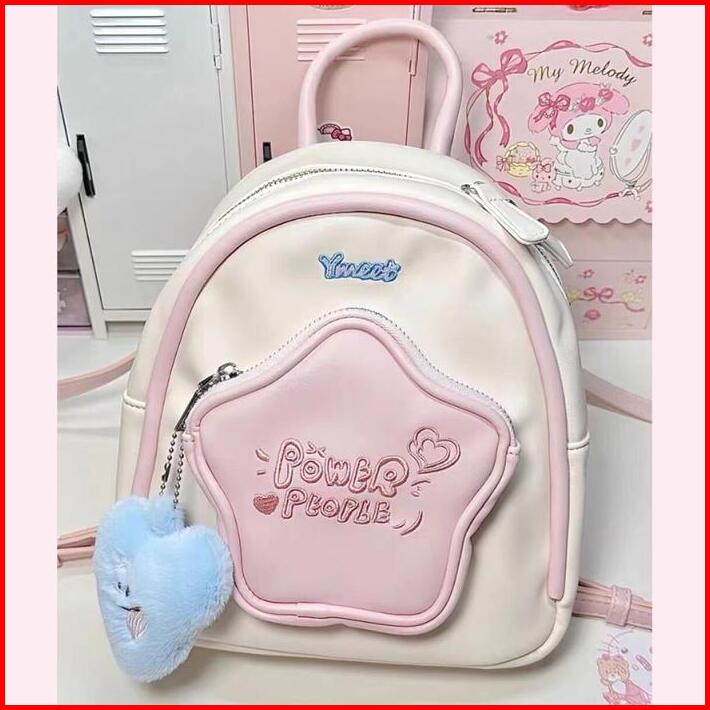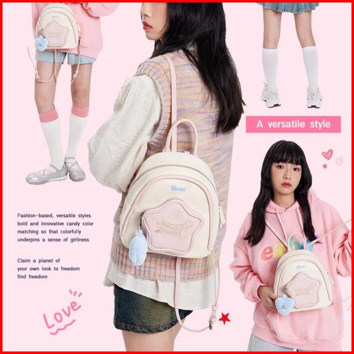 Codlucu Tas Ransel Bahan Pu Bintang Pink White Tas Sekolah Ransel Kecil Mini Kulit Backpack Fashion Korea Bag Kuliah Ran