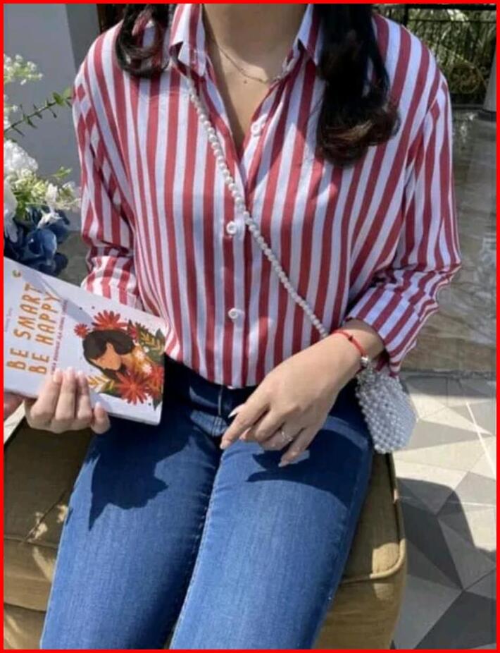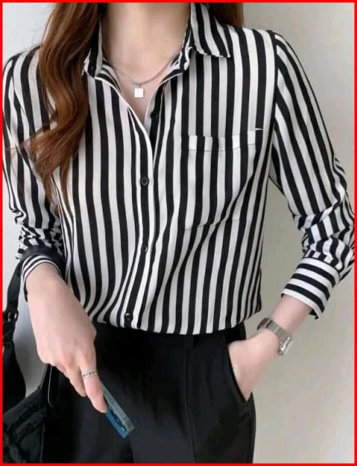 Blouse Stripe Salur Kemeja Atasan Salur Lengan Panjang