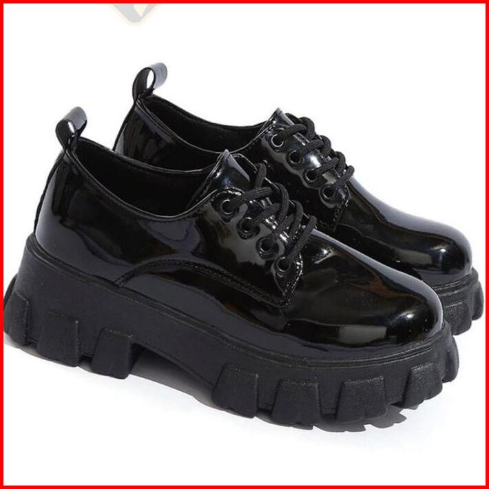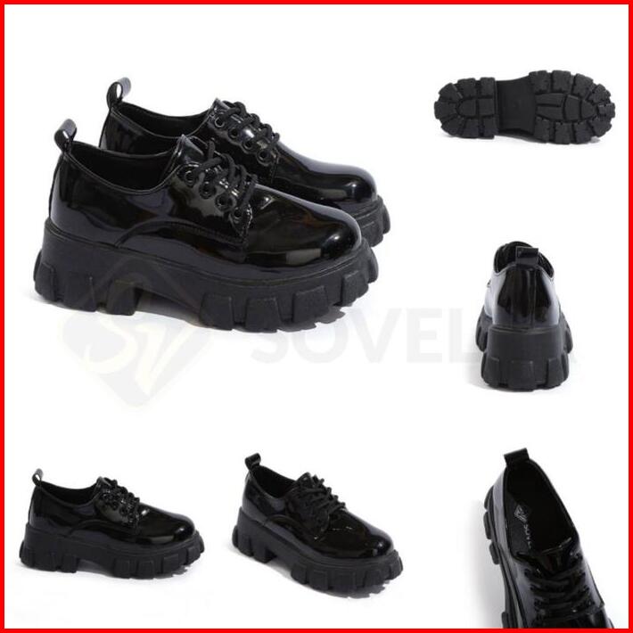 Sepatu Wanita Hitam Glossy Dove Sneakers Pantofel Tinggi 5cm Korean Style Premium Dockmart Fashion Sepatu Kerja Kantor P