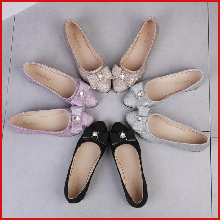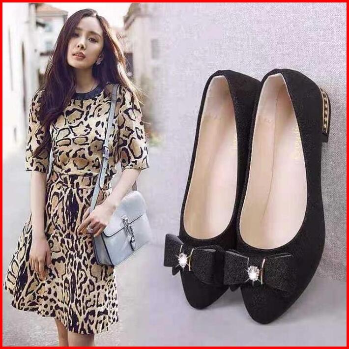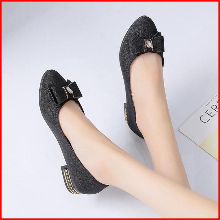 Sepatu Wanita Hitam Black Pesta Kerja Kantor Formal Casual Kondangan Glitter Fashion Korea Style Pita Kekinian Modis Ele